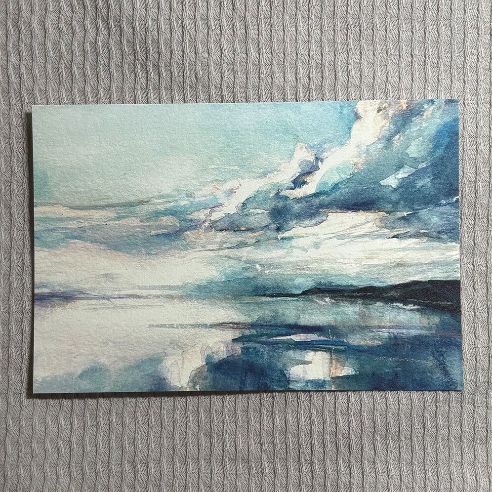 透明水彩+ソフトパステルで風景を描いたポストカード。